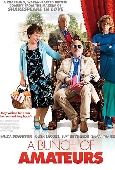 A Bunch Of Amateurs 2008 Genres: Comedy Country: United Kingdom Director: Kim Hopkins Duration: 95 Min Year: 2008 Actors: Burt Reynolds, Alexandra Weaver, Elesia Marie, Sarah Goldberg, Glynis Brooks, Camilla Arfwedson, Michael Wildman, Guy Flanagan, John Moraitis, Pat Starr, Maisie Scott, Charles Durning, Pandora Colin, Lucy Akhurst, Stephen Gressieux, Terence Maynard, Heidi Monsen, Dido Miles Storyline: A sleazy Hollywood agent tricks one of his clients, a faded action star, into playing King Lear in an amateur charity production in England.